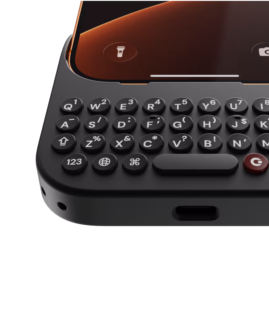 Clicks for iPhone 17 introduces a new enclosure design that's 40% thinner and 11% lighter than Clicks for iPhone 16. The new contoured shape makes Clicks easy to hold and allows your iPhone’s natural colour to shine through while the new enclosure makes it easy to add and remove your iPhone. Plus, a dual attachment point lanyard system allows you to use Clicks with wrist loops and cross-body straps.